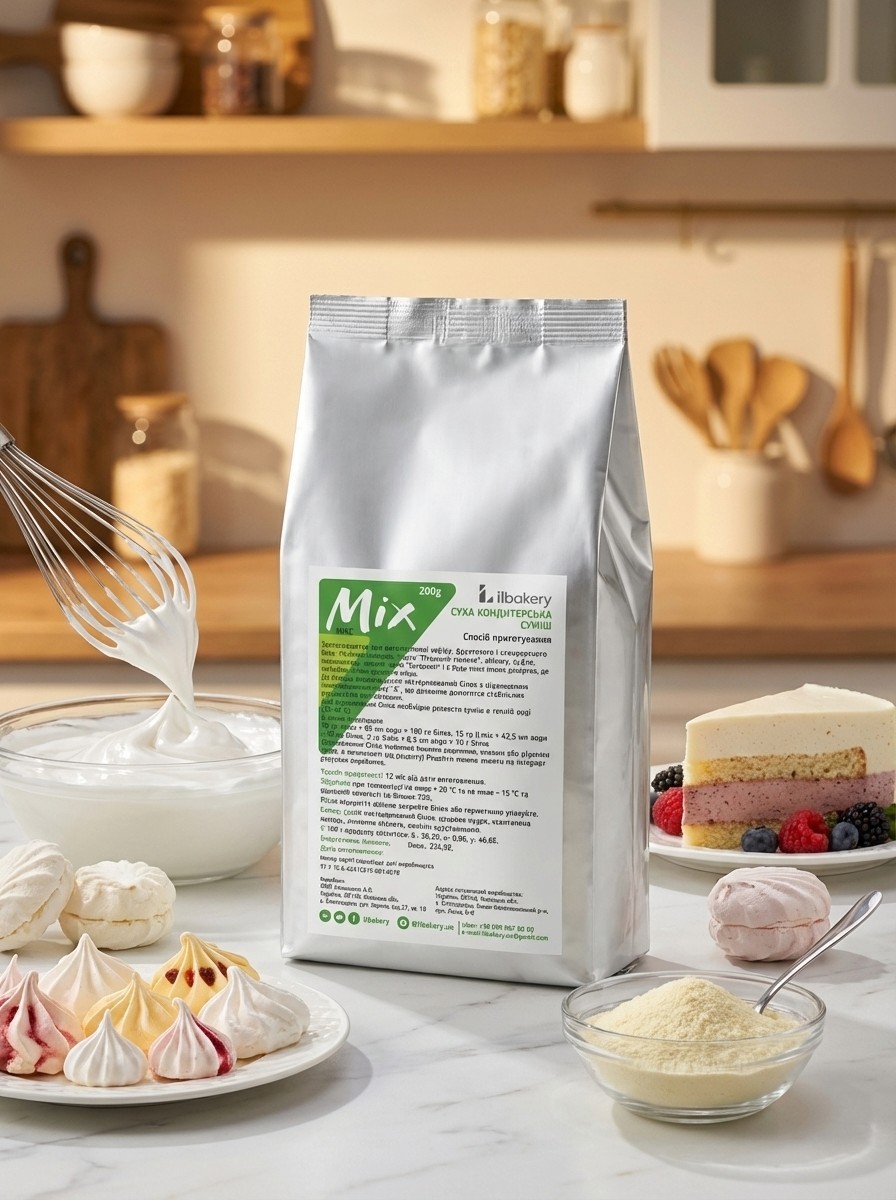 MIX є замінником живого яєчного білка в таких десертах, як зефір, фруктове безе, “Пташине молоко”, пастила, муси та бісквіти типу “Дакуаз”. Завдяки пастеризації цей білок на 100% безпечний і збивається на 30% краще, ніж рідкий курячий білок. Оптимізована формула продукту для швидкого розчинення в рідинах економить час і гарантує бездоганний результат кожного разу.